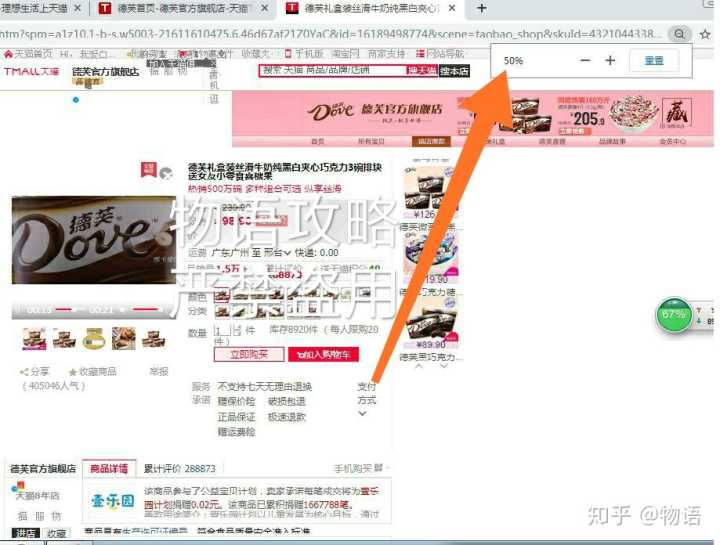 我们用谷歌浏览器打开宝贝页面。将页面缩放百分之50,如图