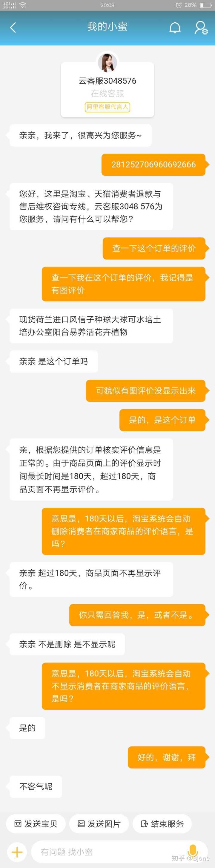 可我明明记得,我有很多有图评价的。于是,我去咨询淘宝客服。客服告诉我,淘宝系统会自动将大于180天的评价”不显示”。