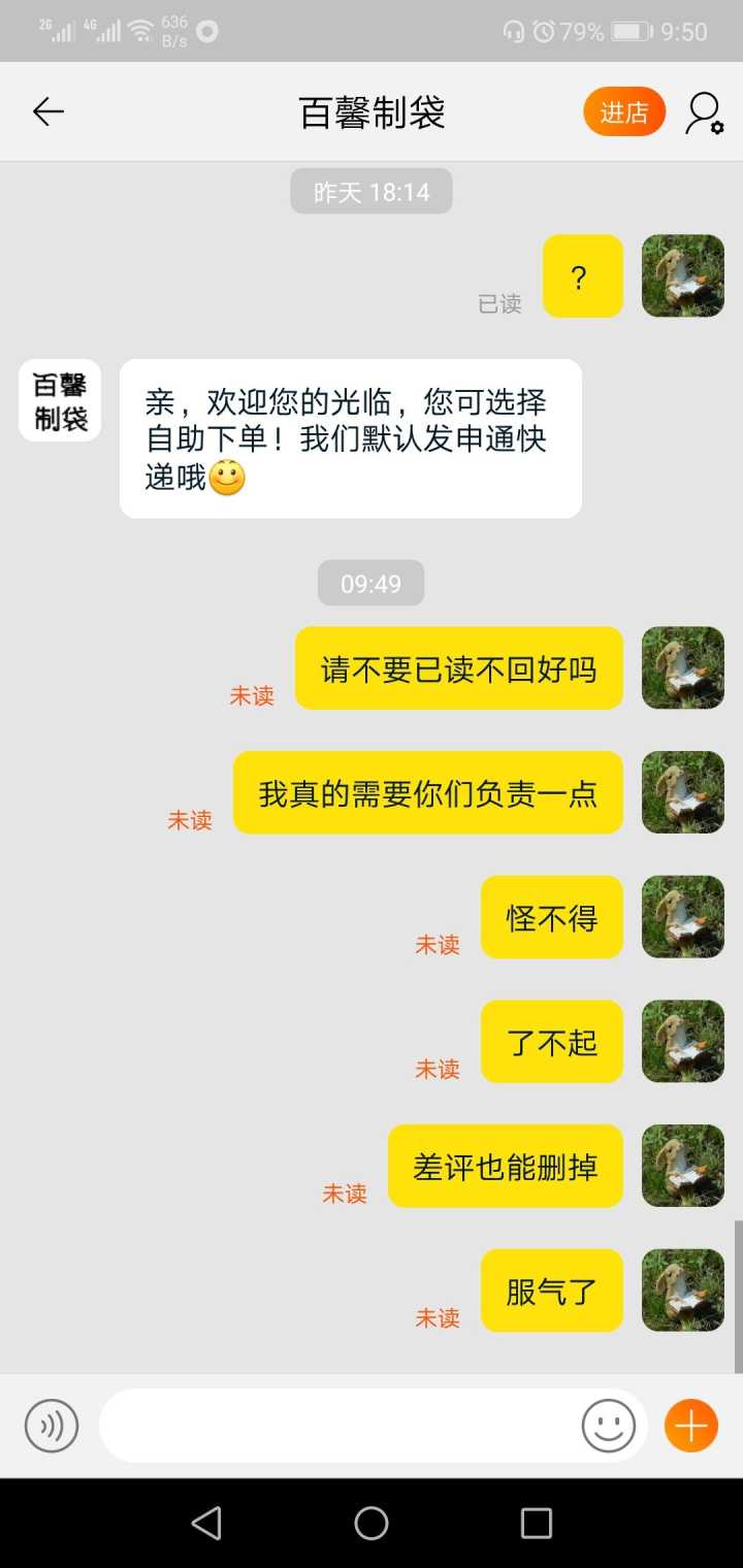 问题来了,差评我码了一大串文字,还配了商品缺失的图,隔了两天就给我显示一个用户已默认评价?
