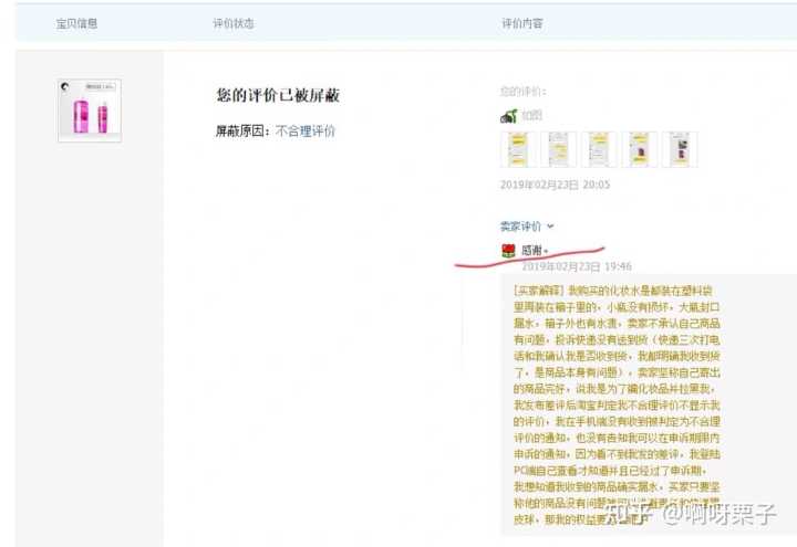 4月3日我的评价恢复。此时从我发现我的评价不显示已经过了12天,我最早购买该店卸妆水时,该商品零差评,经历了这场风波我已经不相信这家店以前从没有过差评,当我的差评恢复时,我发现还有另一个差评,所以我也对另一个差评截图了,可疑的是,当我的差评恢复几天之后,另一个差评也不见了。