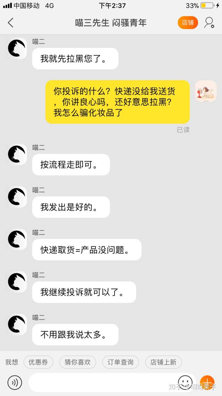 之后并不是说我不给差评,我大多数是给个差评放上大半个月然后改掉,因为我强迫症,不想看见自己的好评率不是100%。卖家态度好我就告诉他过阵子会改,卖家态度不好我就怼回去,但还是会改,真的没遇到什么暴力手段,可能是我见的少。