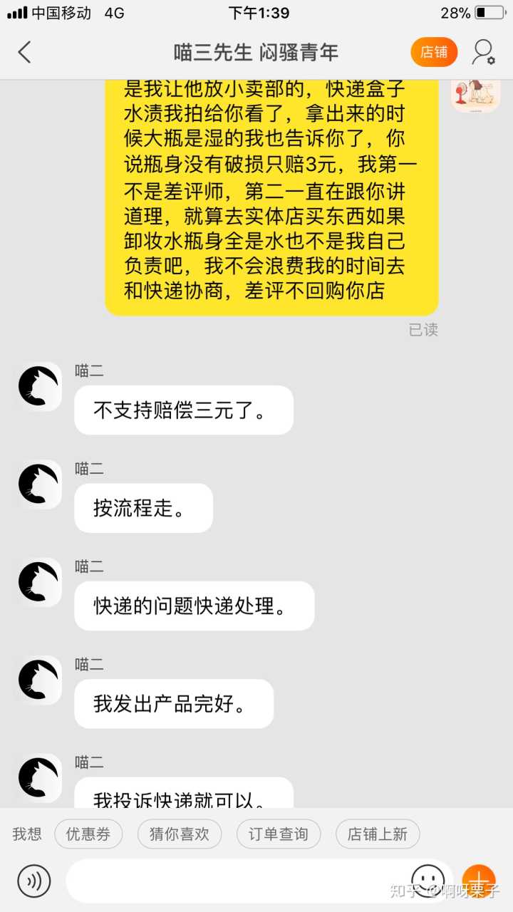 2月23日反悔,称封口漏水不影响使用,只赔付我3元,难道封口漏水不是产品破损吗?我不接受,我个人在淘宝从未退过货,给的差评也是屈指可数,当时觉得跟卖家没有道理可讲了,所以打算差评不再回购。我发的差评内容就是聊天记录截图。
