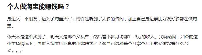 淘宝还能赚钱吗?,作为一个资深三流运营,我只想说放开这个问题让我来;不要说现在做淘宝赚不赚钱,就像你说有钱人不快乐,那是因为有钱人的快乐你体会不了:
