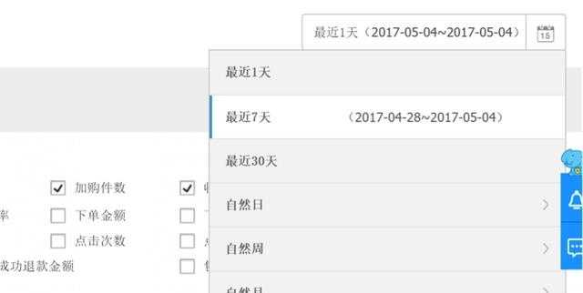 为什么是选择“最近7天”呢?因为,如果选择最近1天,数据偶然性成交导致的偏差可能较大。如果选择最近30天,又有可能涉及运营时间节点不同导致我们判断失误,比如:5月过后天气明显转热,4月的时候,有些春秋款转化还不错的,但过了5月,就已经开始不行了。如果看30天,就会影响我们最后做决策。