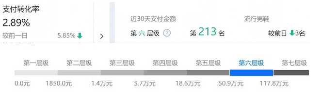 那么,什么样才是一个值得推广的好款式?这里以男鞋类目提供一些数据给各位参考(其它类目,也可参照这个分析模型)。先来看一组数据: