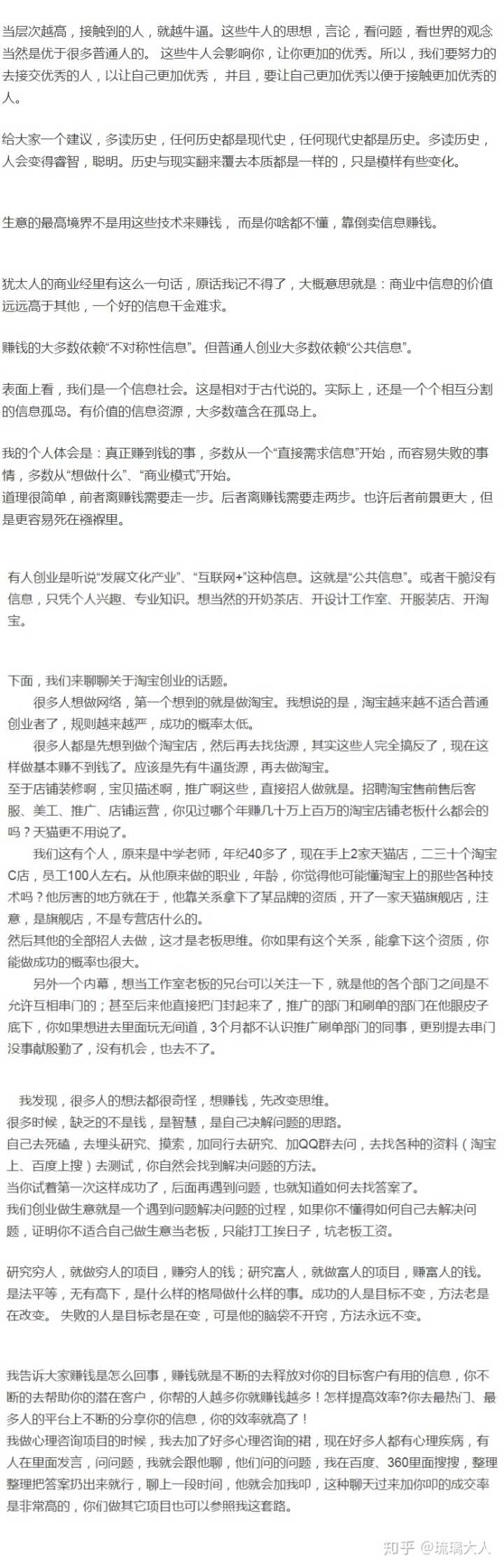 说起创业思维和方法,各人有各人的想法和见解。不过今天本人不提那些创业的鸡汤和励志短片。毕竟我没有做过,妄下评论有失偏颇,赚钱的方式千千万万,总会适合你的一项。