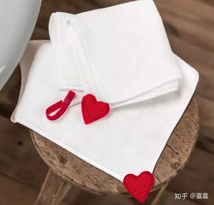 Acooltd爱心浴巾套组每一款都特别可爱。以白色为底色,再用电脑绣上红色爱心做点缀。毛巾材质安全可靠,获得了认证的A类婴幼儿使用级别。