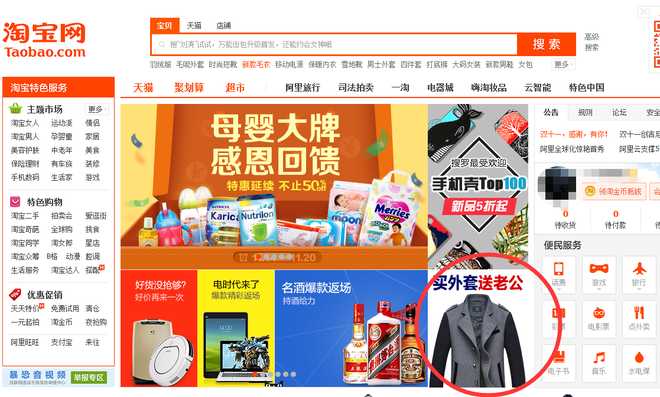 关于钻展,就说这么个例子吧。淘宝首页看钻展买了件棉袄上衣,钻展大概是这个位置: