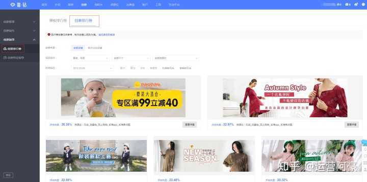 根据创意排行榜,通过竞争情报,或者商品店铺排行榜,关注主要竞争或者钻展做的不错的童类目店铺,查看他们的钻展图的设计。