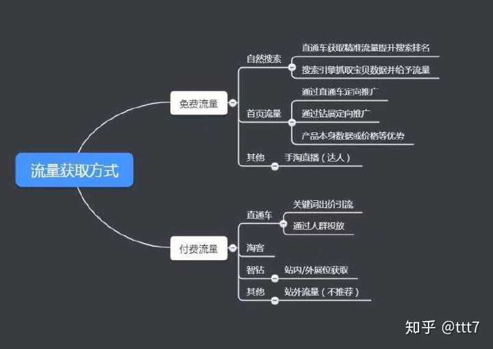 • ①一定要清楚淘系各个流量入口及结构、价值,这将取决你通过什么技巧来获取哪块流量,并且会清晰的认识什么流量才是良性健康的;