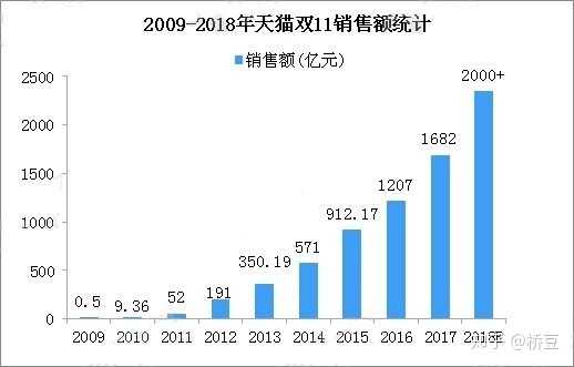 淘宝在十几年里有着翻天覆地的变化,从每年双11的销售额数据可以看出,迅速的增长的趋势。