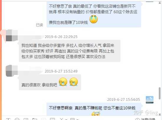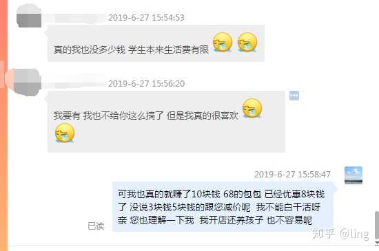 好不容易等到客户来问 就是讲价 说自己是学生差钱 但是自己包包还多 还要被妈妈骂 还很喜欢 但是就是差10块钱 很喜欢但是多10块钱就不买了