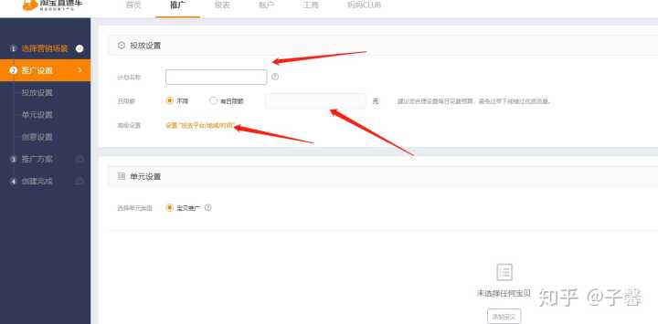 1.4完成直通车四大设置, 计划名称写你宝贝的名称,日限额单品一天100元,投放平台:只开通无线,投放时间:全日制投放,投放地域:除了港、澳、台以外。
