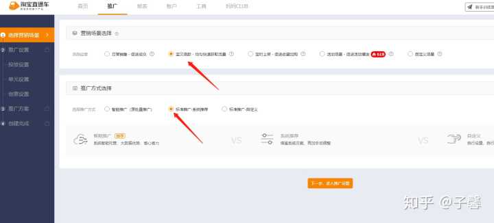 1.3营销场景选择宝贝测款,推广方式为标准推广。