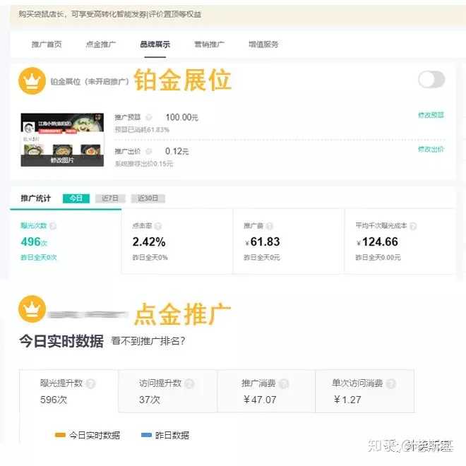 很多文章和美团平台都推荐有品牌的商家来做这两个展位,不过依然有很多不死心的个体商家来咨询。首先,从我们的运营经验来讲,单店去做这两个展位的曝光量、转化率都不够好。昨天我们有个北京的商家申请了铂金展位。今天这个推广数据出来一对比,大家就知道效果了。