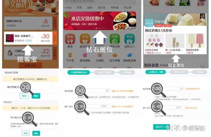 那是不是钻石和铂金展位就不适合单店的商家呢?也不是,在一些三四线城市,由于商圈比较集中,人口较少。只要你的店小有名气,知名度比较高,也可以用这两个展位做广告。