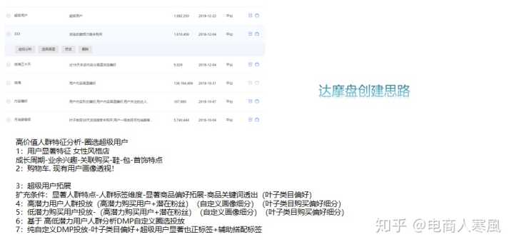 上图中谈到和直通车定向投放类似的访客定向、相似宝贝定向、购物意图定向就不再细聊,重点看一下达摩盘定向和扩展定向