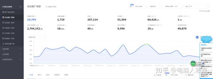 (2)可以从下拉框中查看全店推广和单品推广的不同数据;