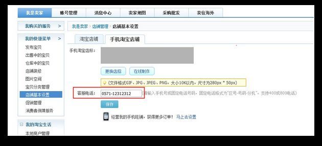 手机客户端店铺中卖家的联系方式如何修改? 大文 四月 5, 2016 交易管理 0 条评论 1878 围观 亲,订单创建后,买家可以在淘宝手机客户端看到卖家的联系方式,当卖家需要修改时,可参照: 修改入口:【店铺管理】-【店铺基本设置】-【手机淘宝设置】(修改后实时更新)