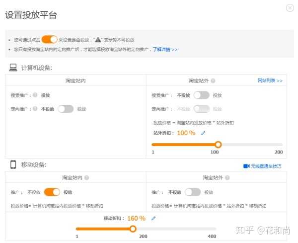 ①投放平台设置:以站内为主。淘宝站内的访客相比站外更加精准,成交率更高所以我们选站内。