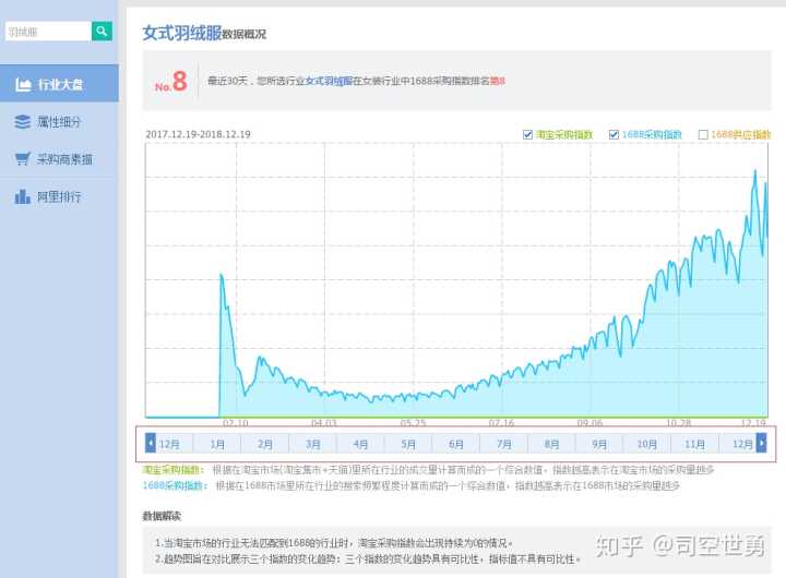 那么我们看阿里指数的时候,一定要看一个整体的大盘,搜索一下我们的核心词然后拉一年的时间