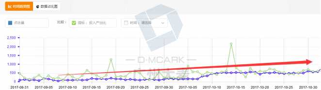 我们坚持用低出价,高溢价的方式来操作直通车,直通车流量以及投产都逐渐上涨。尤其到了十月份,直通车效果明显比之前上升了一个阶梯,这期间除了不断的优化直通车本身外,还要结合客服反映的问题优化店铺内功等。