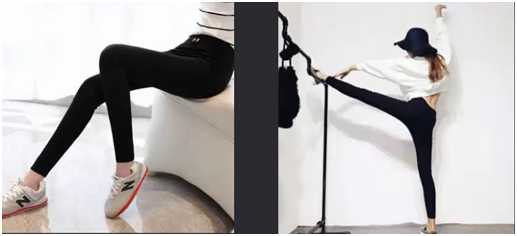 就比如左图仅仅只是通过模特来展示出这个产品的款式,并没有让用户通过图片能够感知到它的一个弹力性。而右图则是通过让模特高跷腿这样的一个形式,通过这个向用户展示你的产品和其他人的产品有哪些不一样。