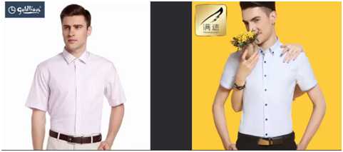 2.我们可以利用背景图或者模特的表情等等吸引客户。例如同为一款男士短袖衬衫,这两家竞争对手都采用了外国模特。左图就仅仅是一个白底背景以及一个展示的外国模特。相对于另一家,他就是在背景色以及模特与产品之间的共鸣还有模特的表情来吸引顾客的注意力。其实大家很快就发现,我们对于这两款产品很快的进行了区隔,需要的就是让客户在短时间内对你的商品进行感知。