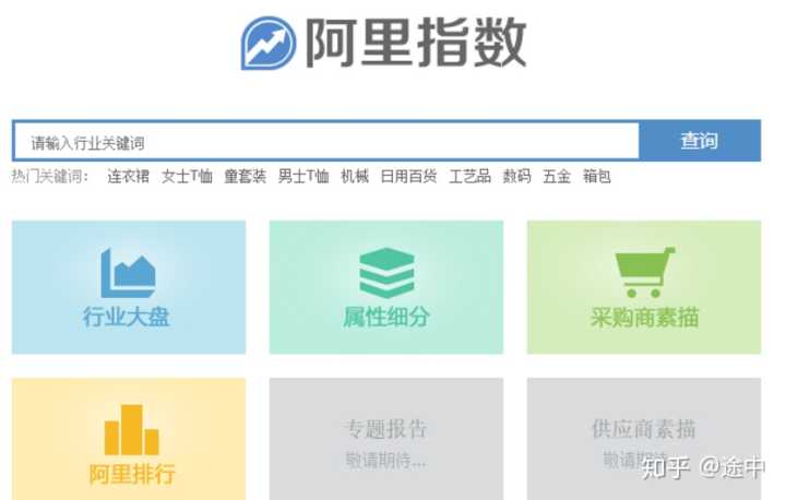 二、阿里指数除了行业关键词的搜索框以外,它还分为行业大盘、属性细分、采购商素描、阿里排行四大板块;