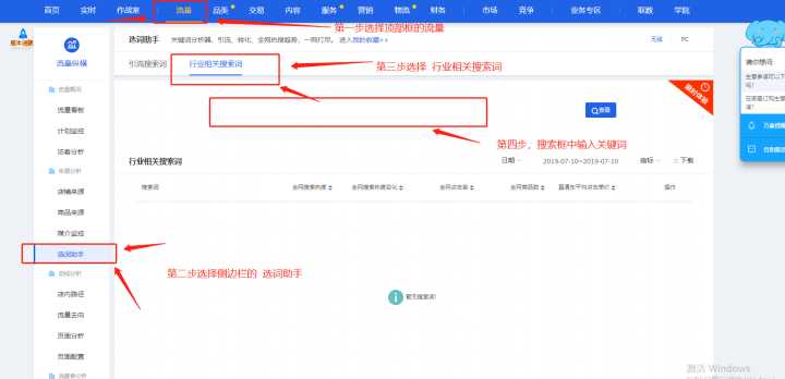 其实很简单,在淘宝店家后台订购生意参谋,这个是免费的,接下来的方法就按照我下图中标注的方法操作就行了。