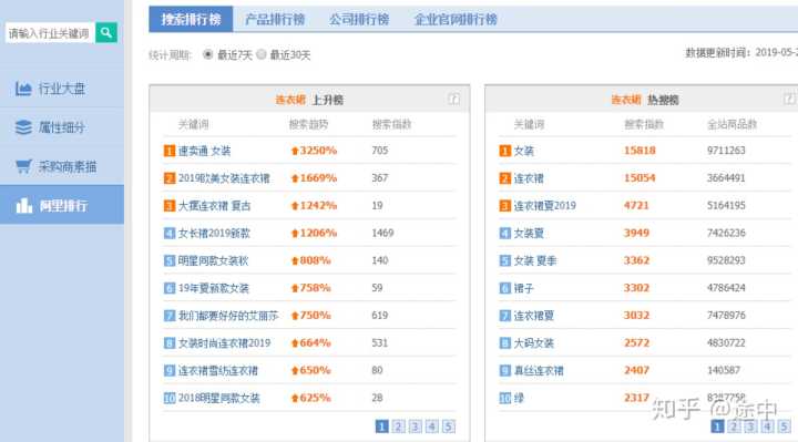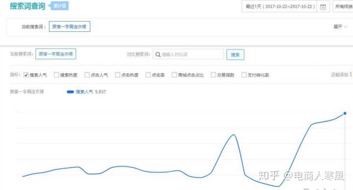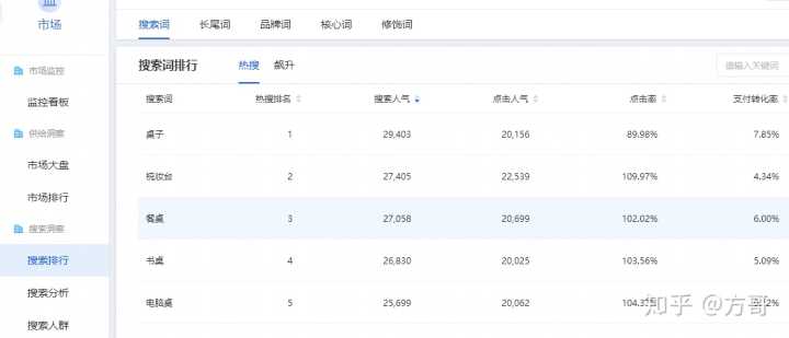 右边是热搜榜,热搜榜和上升榜的区别在于是以商品关键词的搜索指数作为排名依据,搜索指数越大,表面越热门;选取的时候不能以单独一个参数,判断依据太少;