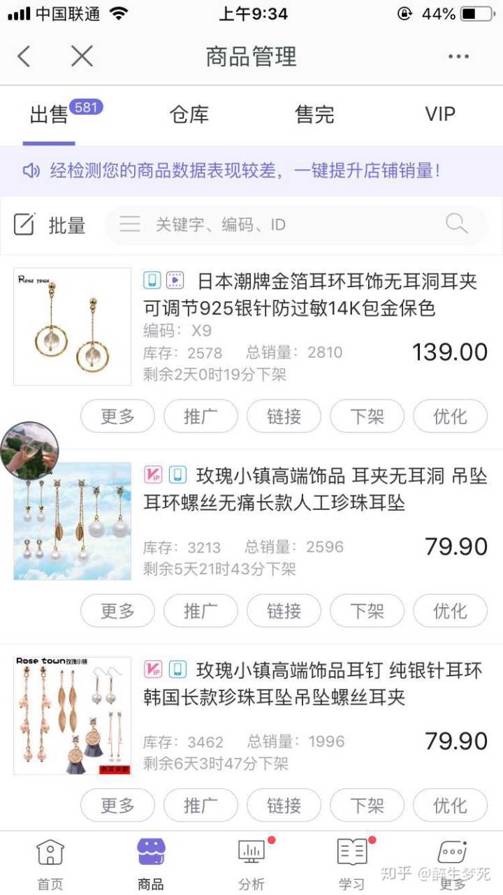 从14年开始了白天工作,晚上打理店铺,同时做了日本和韩国饰品的代销,不在是做外贸饰品了,提高了饰品的品质和单价。每天大约耗费两三个小时左右,一个月4到5K的利润,然后转折点在16年,有几个小网红无私的推广我家的产品,一下子每天发货三四十件,我辞职注册了公司。