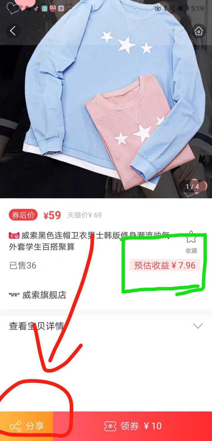 我说这么多应该懂了吧 原价79的衣服领了优惠券直接少20 变成59啦