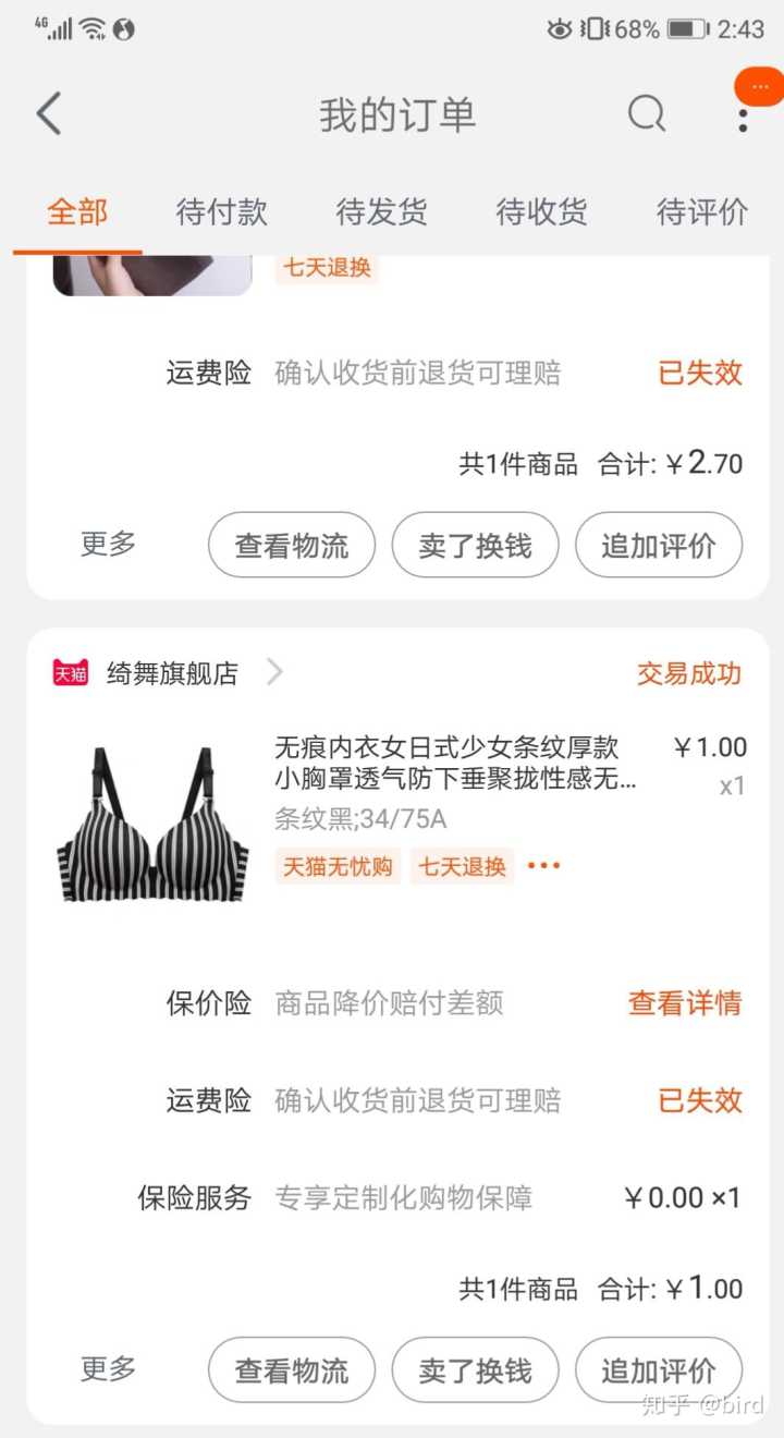 为什么退后面这件,因为第一件试穿了,我懒得整理折叠再装袋子,淘宝商品衣服是一样的,寄过来的地方也是一样的,就懒得拆后面这个直接寄回了,在做测评快递比较多。