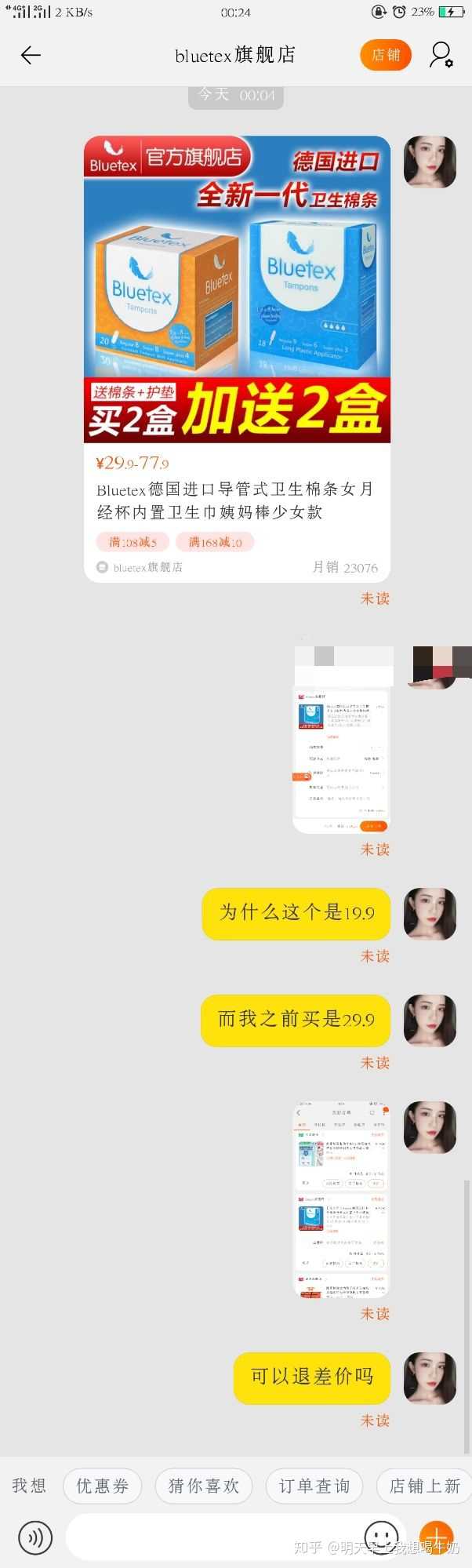我要来说一下,就在刚刚,我被别人安利了一个神奇的app,一开始我不相信,就在前两天我买了一盒卫生棉条,是29.9,刚刚下了那个app,同一家旗舰店,同一款便宜了18.0块钱,