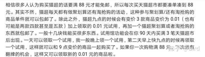 还有一个很重要的就是天猫超市的一分钱购买攻略