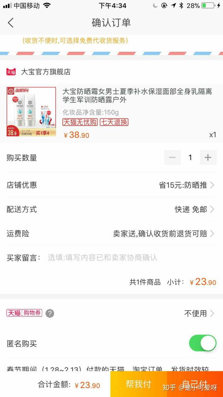 大宝防晒2支23.9,简直是夏天的福音,猪猪女孩必备呀