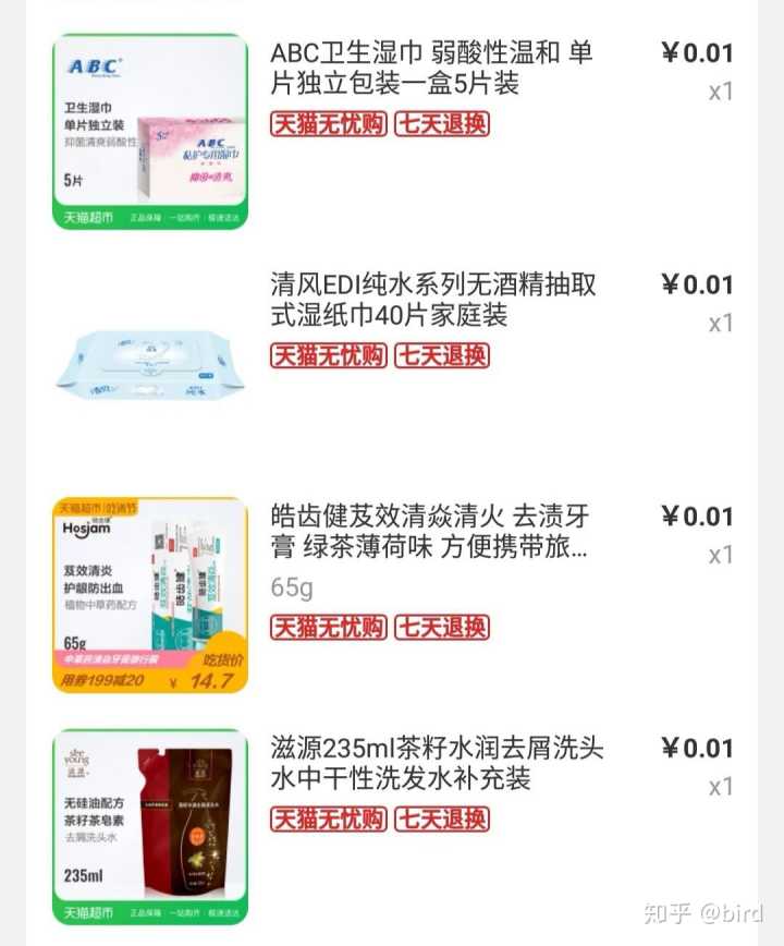 最近也没什么特别想买的,没事就撸撸天猫超市的一分钱 姨妈巾 洗洁精 牙刷 之类的基本不用买了