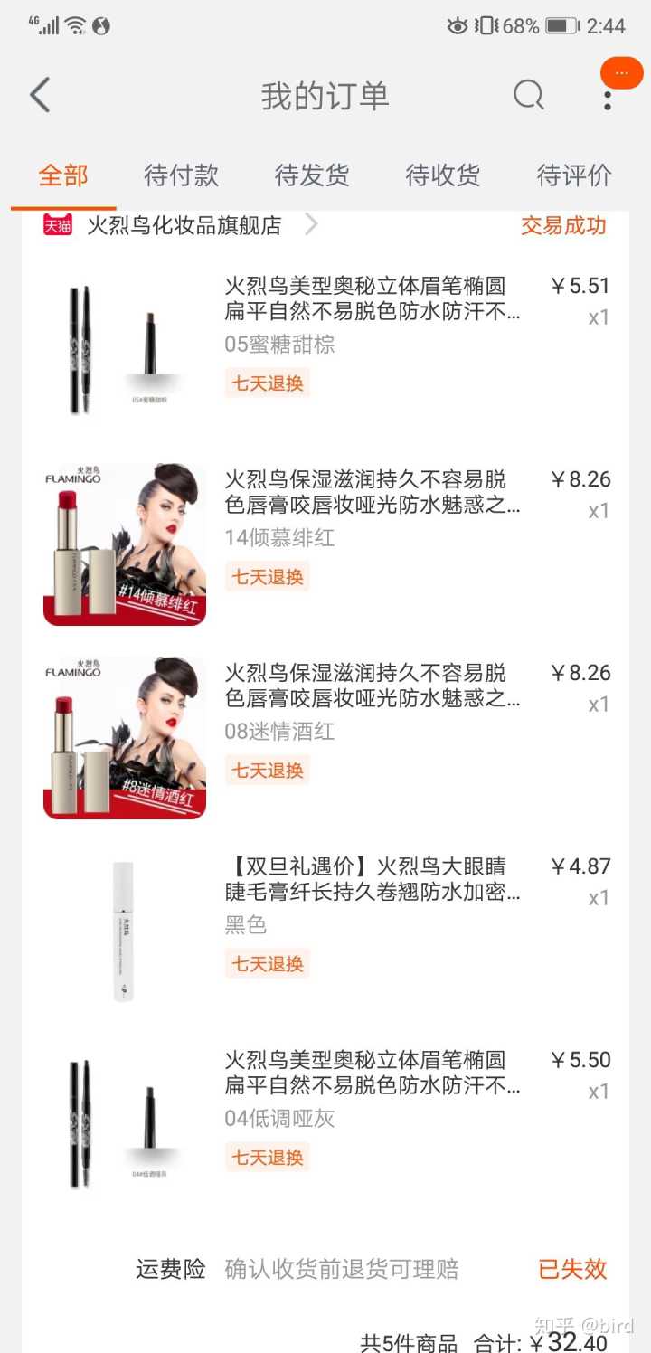火烈鸟旗舰店,两只口红,两只眉笔一个睫毛膏才32.4元