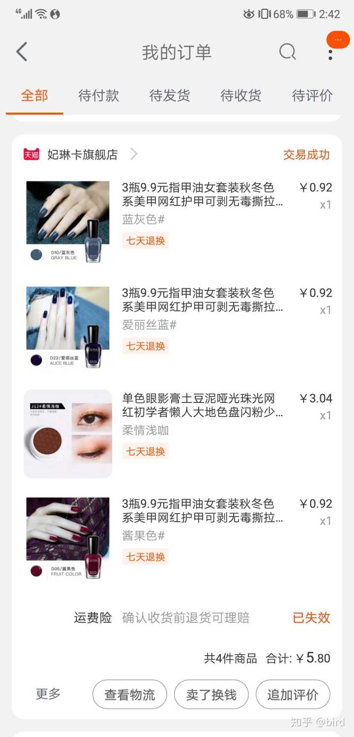指甲油不到一块,眼影是凑单的