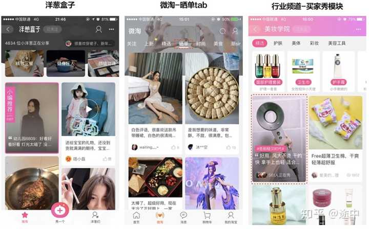 2. 形式多元化,偏向于内容化发展,有图文,直播,短视频等形式