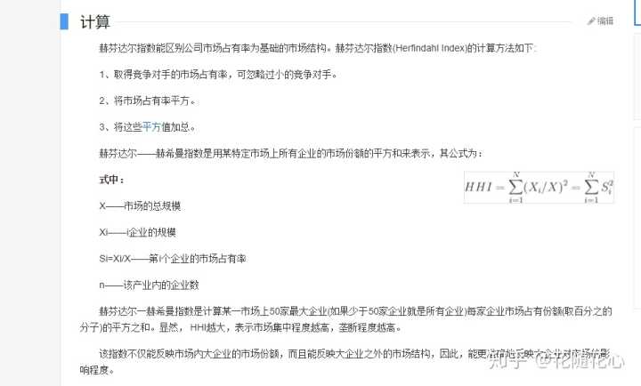 接下来,我们来聊聊集中度,也就是财富是否聚集在少数人手上。计算之前,我们再来看看赫芬达尔指数是怎么说的,如图所示