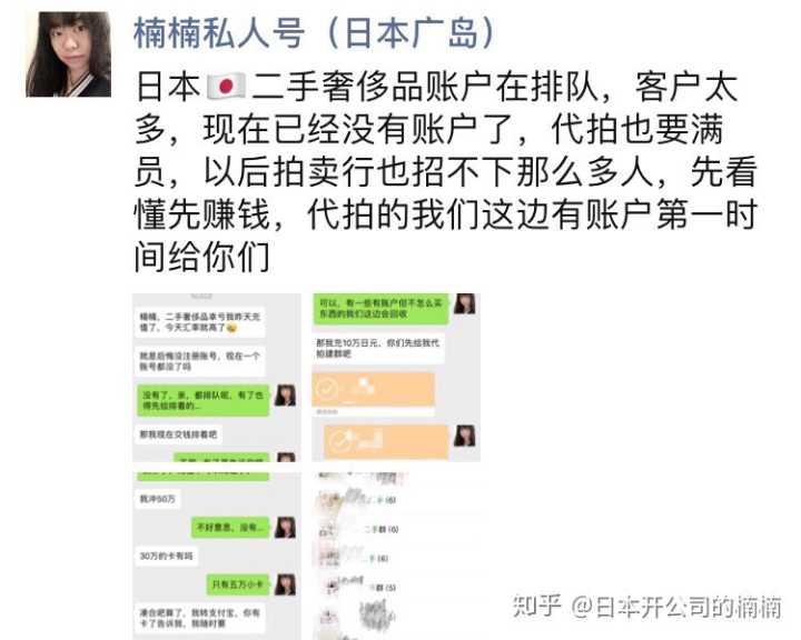 现在的合作方式就是,如果你想做二手奢侈品生意,我们还会为你建群,提供翻译,解决问题之类,但是就不能自己拍货了,给我们链接,充值,我们用自己的账户帮拍。然后排队等大客户的账户不用了,或者有些拍货比较少的客户,我们会回收日本账户给想拍东西的客户。