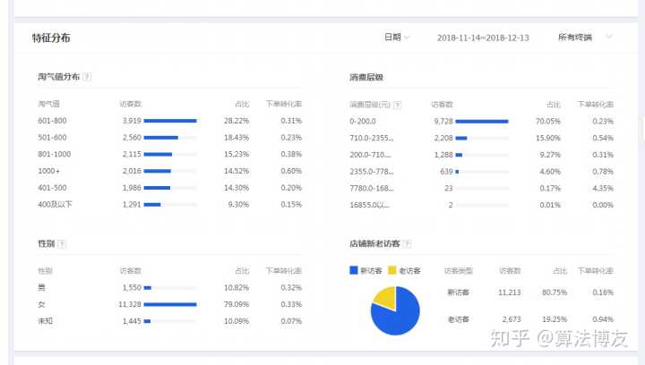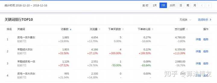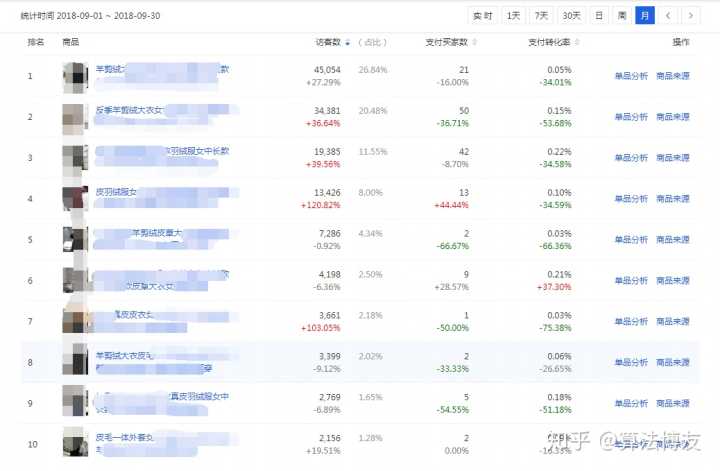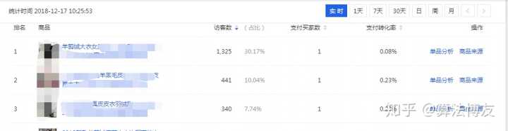 通过人群很容易看出女生买的比较多,人群年龄主要是在26-50这部分人群,因为是皮草还是比较偏于妈妈型的,地域主要偏北方,根据这些流量和转化情况,可以去精准地做推广和投放。