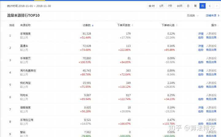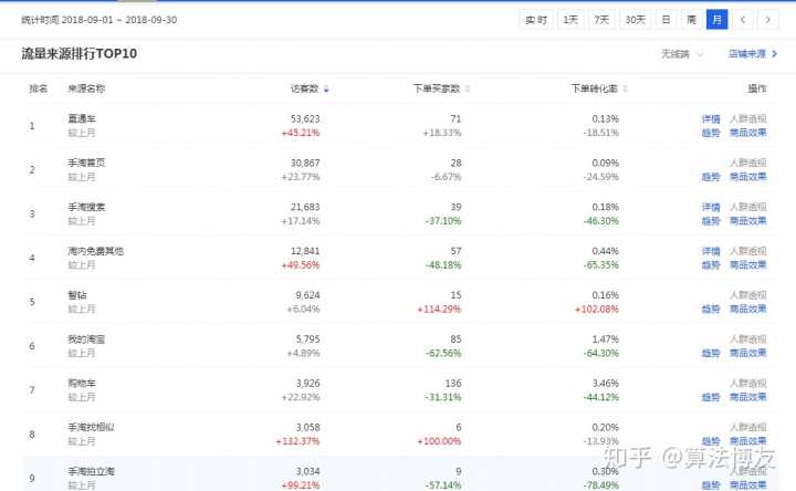 通过上面推广部署,可以看出咱们的手淘流量是很明显提升起来的,整体店铺不在只靠付费推广,手淘搜索和首页流量都是很大提升。