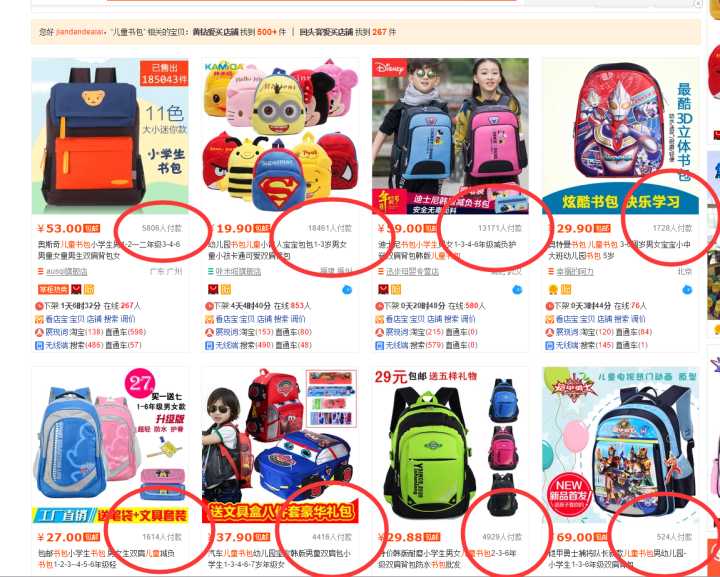 虽然我不是做儿童书包,但是通过搜索结果分析,你这个行业竞争是非常激烈的,例如搜索“儿童书包”