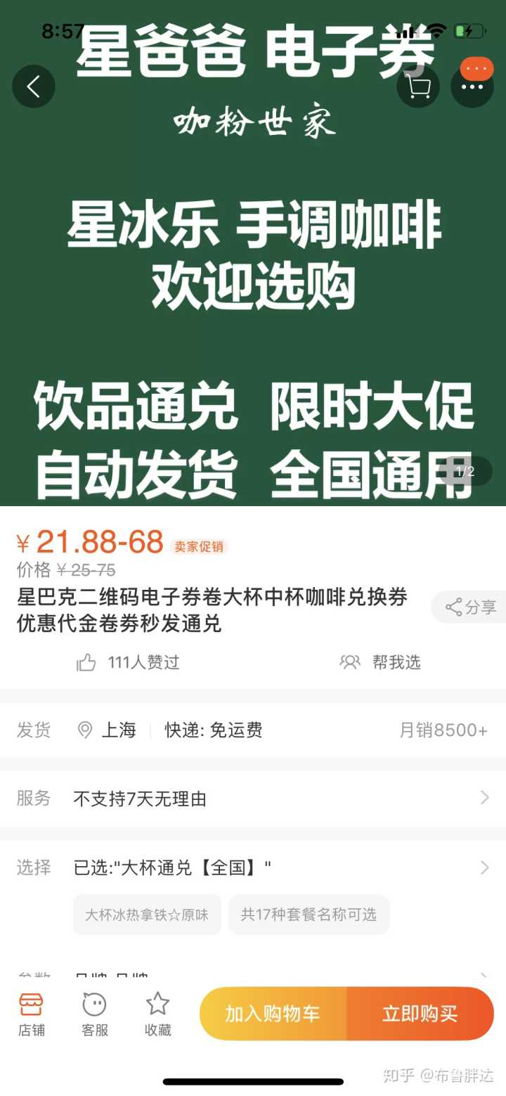 我每次都是想好自己要喝什么,直接在TB上买好券,后台自动发券。一般来说,是店铺正价的七折。