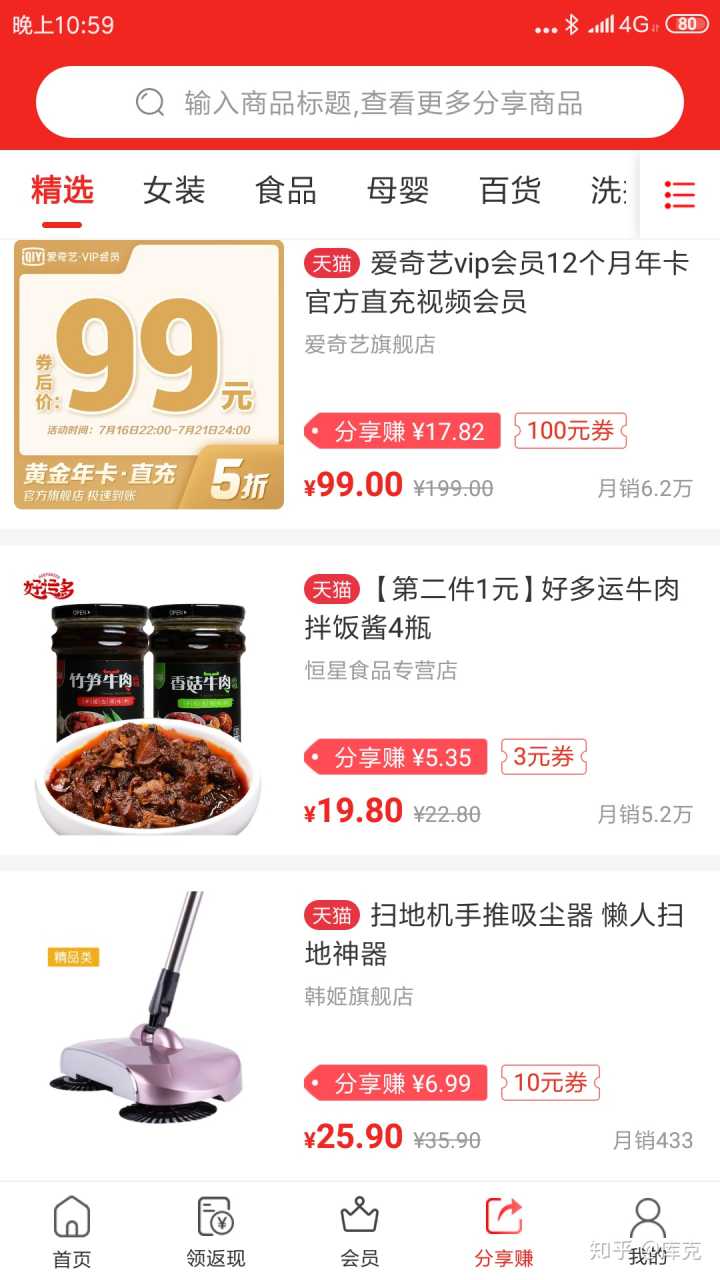 不仅仅是吃的穿的,爱奇艺视频,手机充值,油卡1900抵2000,都可以转发分享返现。也就是说,你自己不用买,朋友买你也有所标注的分享返现额。