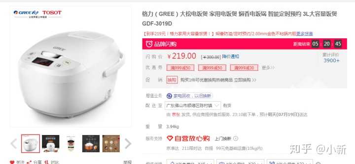 这个是昨天晚上京东格力旗舰店大松电饭煲做的一个活动,如图所示他的活动价是219元,然后他可以领取优惠券,999减50,那这优惠券也根本没用对吧?