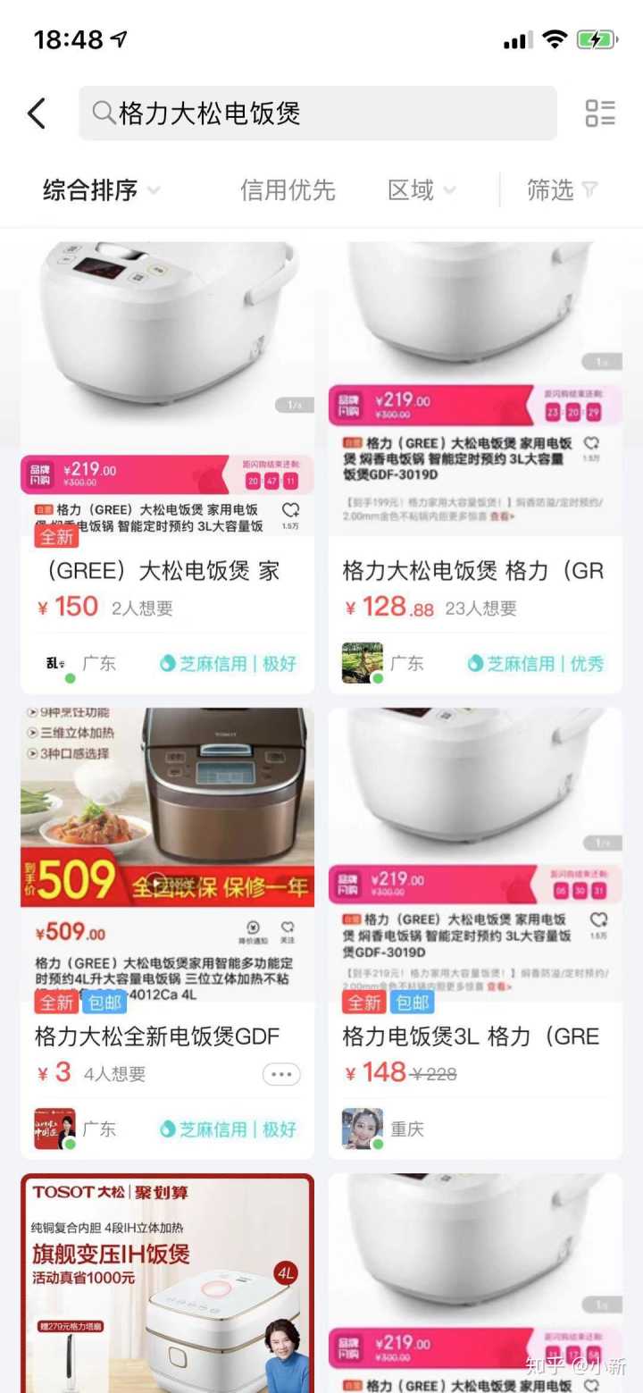 这所有可能有小伙伴会说了,我买这么多的电饭煲干什么啊?这时候你就要拓展一下的自己的思维比如你可以去搜一下咸鱼,格力电饭煲,可以看一下图片,聪明的人已经是早早买了然后把它挂在咸鱼上,再转卖出去,我们看第1个他卖150一个电饭煲,而且不包邮,5个,他就可以赚155元了,而且价格是随你设置的不一定卖150,只要在119-219这个价格范围内你都可以去卖,赚多赚少,看你自己的心情。